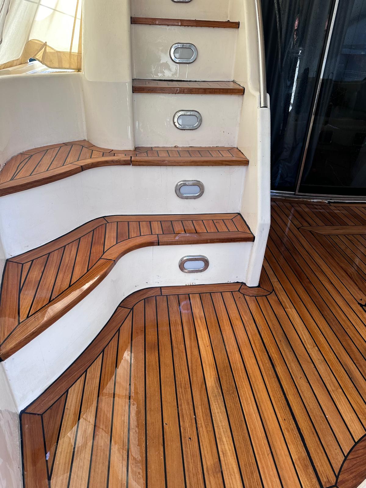 A teka é uma madeira nobre usada em pavimentos de yachts, conhecida pela sua resistência à água e durabilidade. Com um aspeto clássico e elegante, combina funcionalidade com luxo. É antiderrapante, mesmo molhada, tornando-se ideal para ambientes marítimos. Pode ser natural ou sintética, mantendo sempre um visual sofisticado.